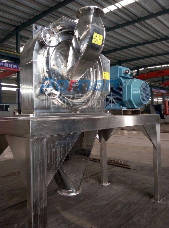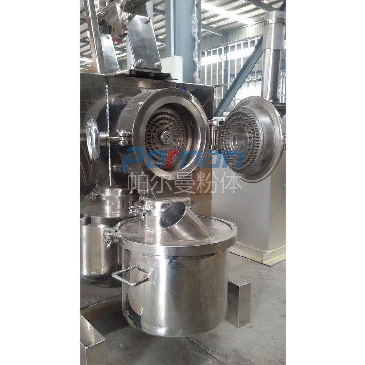 本機(jī)由機(jī)殼、機(jī)門、轉(zhuǎn)子、定子、主軸、主軸氣封裝置、加料裝置等零部件組成,機(jī)殼與機(jī)門之間裝有密封圈,防止粉塵泄漏,物料通過可調(diào)節(jié)振動(dòng)加料器定量輸入粉碎腔,保證加料過程均勻與連續(xù)性。