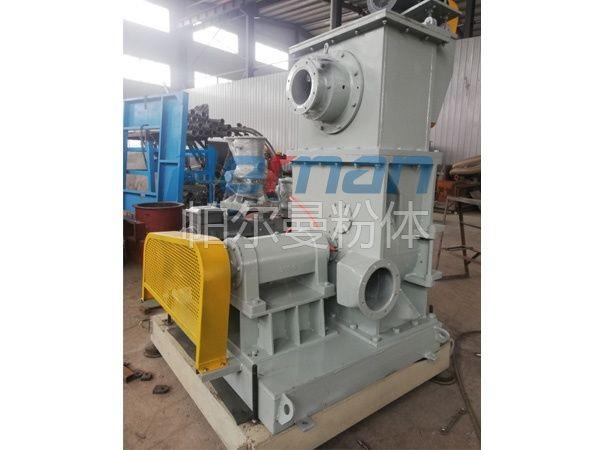 負壓空氣研磨系統(tǒng)的設(shè)備積垢問題經(jīng)常是討論的焦點。設(shè)備的清洗,特別是輸送風(fēng)機的清洗過于耗時。此外,在開機和關(guān)機過程中風(fēng)機葉輪上的積垢還可能剝落,導(dǎo)致風(fēng)機的振動及其運轉(zhuǎn)狀態(tài)的振蕩。因此可考慮由負壓流程改為正壓流程。在新的工作模式下風(fēng)機安裝在分級磨之前,將工藝空氣壓入研磨系統(tǒng)。這種工作模式的優(yōu)點是研磨后的碳酸氫鈉不通過風(fēng)機運輸,完全避免了風(fēng)機的積垢問題。此外風(fēng)機的耗電也有所降低,使經(jīng)營成本更低,但是對設(shè)備的密封性能提出了更高的考驗,無論是設(shè)備的設(shè)計結(jié)構(gòu)、加工精度及配合都有嚴格的要求,設(shè)備的造價成本也會更高。