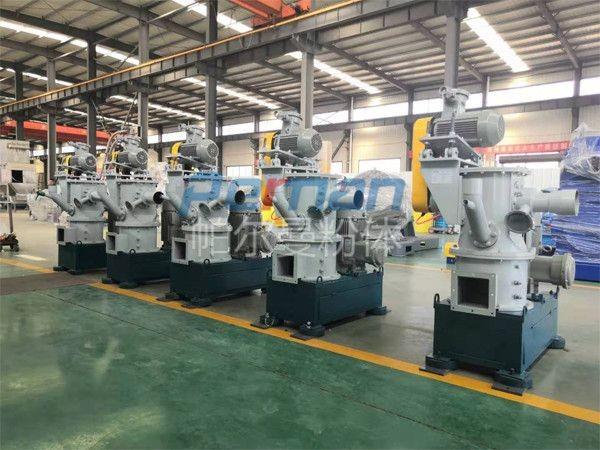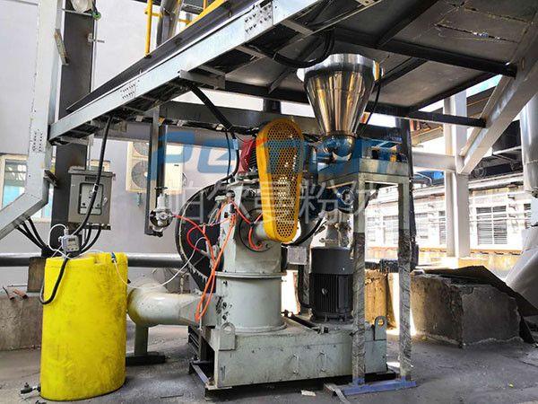 碳酸氫鈉通過失重螺旋喂料稱定量均勻喂料進入CAM空氣分級磨,通過高速旋轉的磨塊與齒圈形成碰撞,摩擦,剪切多種作用力下粉碎,粉碎后隨氣流進入分級區(qū),合格的物料通過分級輪進入煙道進行反應,粗料落入粉碎區(qū)繼續(xù)粉碎,顆粒的大小可調整分級輪的轉速獲得。